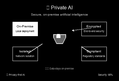 Public AI platforms often raise concerns around data privacy, compliance, and ownership. With Private AI, your data stays in your environment, under your control, ensuring security, confidentiality, and alignment with regulatory requirements.