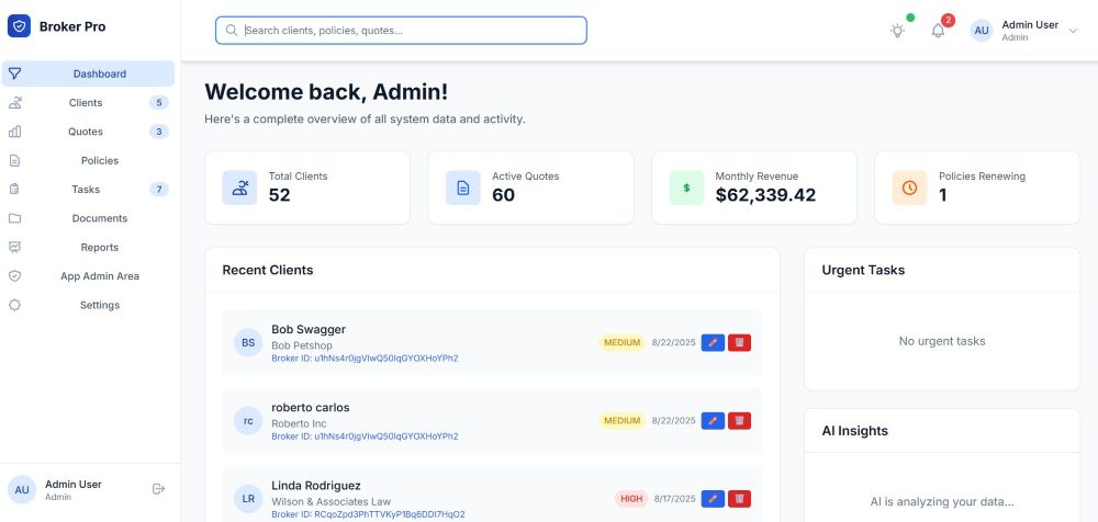 This insurance broker platform is designed to revolutionize how insurance professionals manage their business operations, serve clients, and drive growth. With its comprehensive feature set, modern architecture, and user-centric design, it provides everything needed to run a successful insurance brokerage in today’s digital landscape.